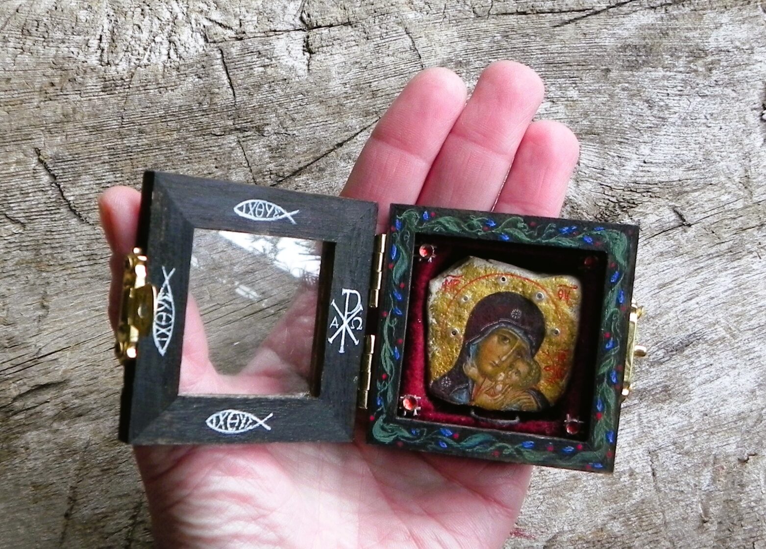 Dievmāte "Eleusa". Akmens, olas tempera. 6,5x5,5cm. 2020 -