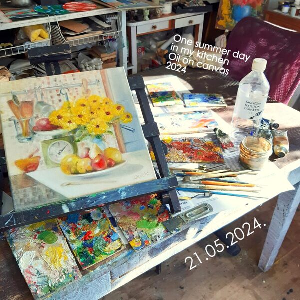 - To some works I added my poetry, which was written a long time ago and found its visual form this year as well as brand new poetry from 2024, which was written for a ready-made painting.
