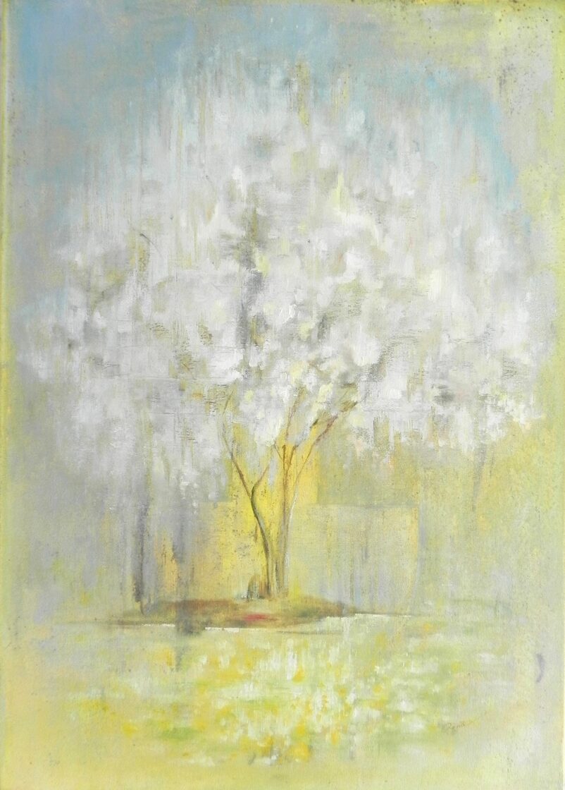 "Ķirši zied". Eļļa, autortehnika uz audekla. 70x50cm. 2024