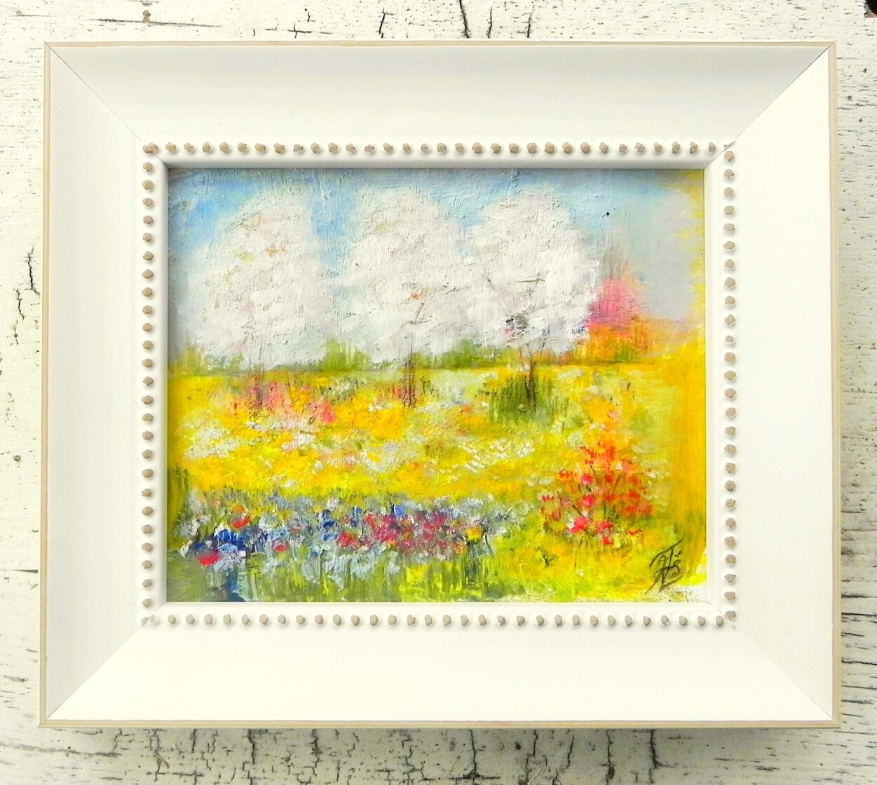 Miniatūra. "Pavasaris manā dārzā". Eļļa uz papīra. 15,3x13,3cm. 2024